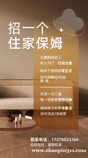 诚招家庭保姆,主要负责家庭日常清洁